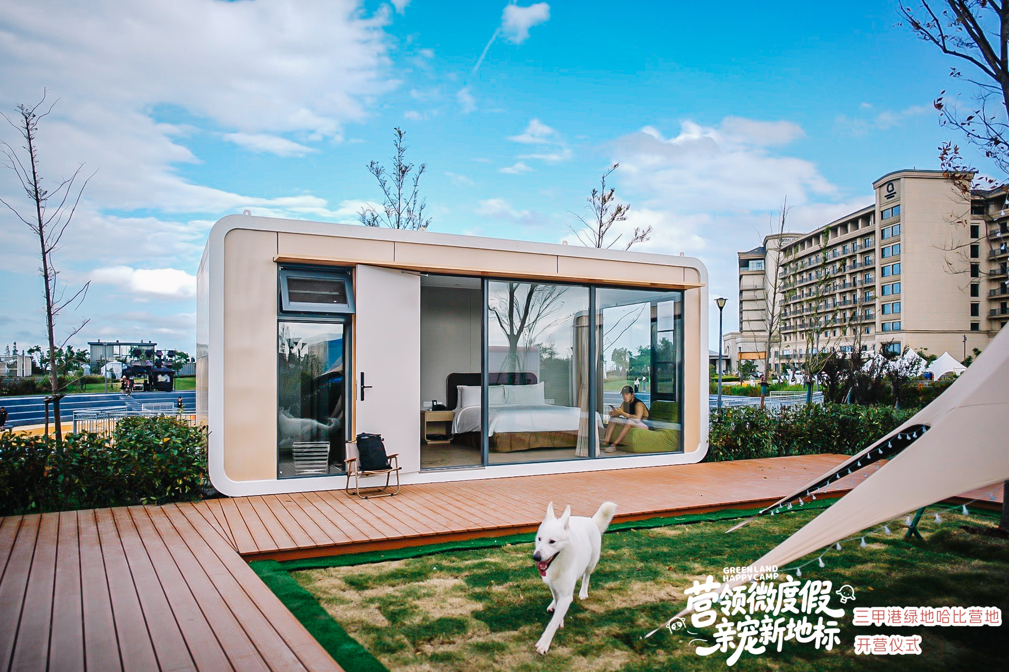 此次开放的是三甲港绿地哈比营地一期,包含了庭院式太空舱,按照亲子家庭组团、宠物朋友圈等客群需求设定了三户、四户等组团院落。营地设立了亲子区与宠物友好区,包含亲子自然运动、网红花海、宠物专属活动区与宠物嬉玩设施,实现“人宠共欢”。