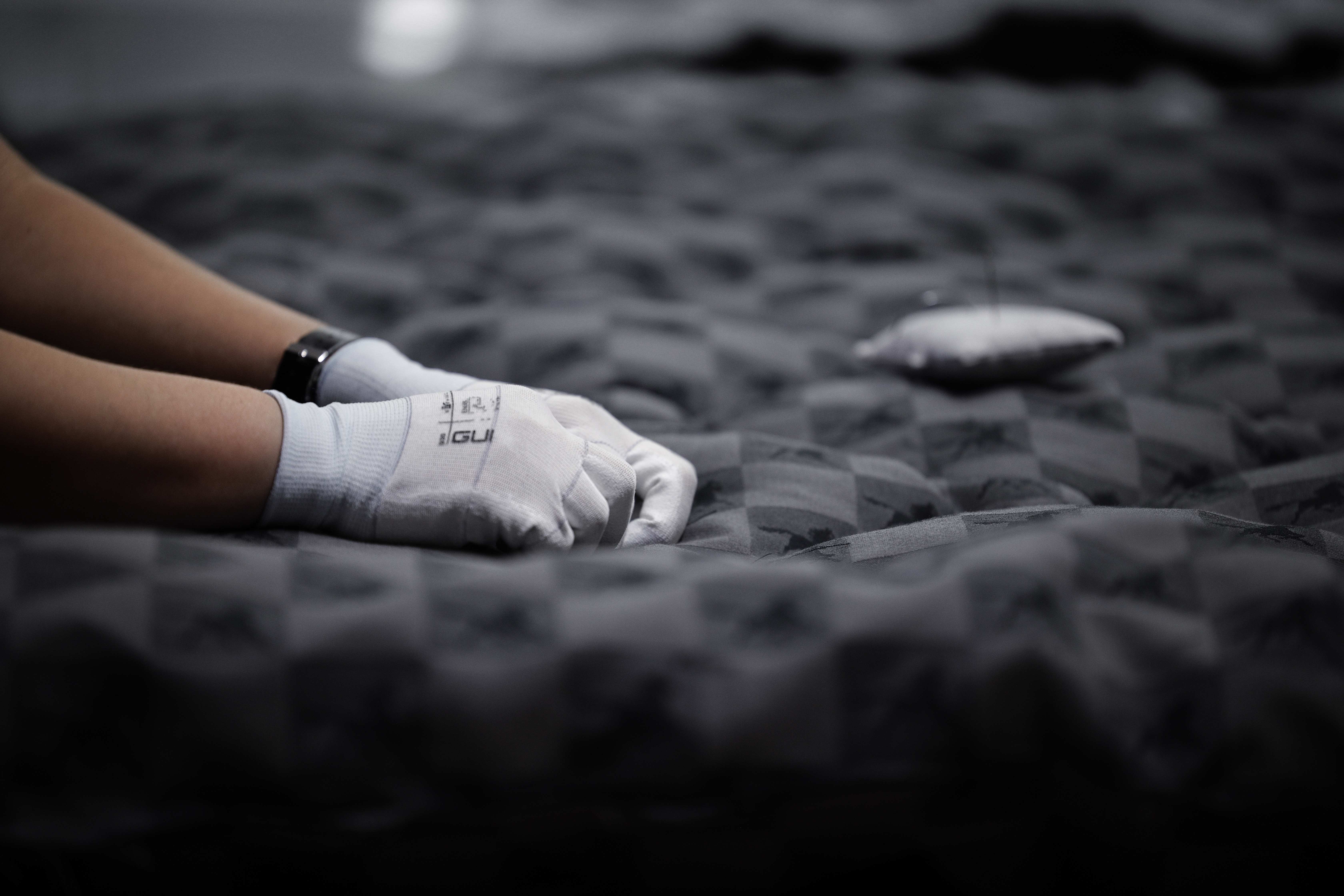 被誉为“海丝腾床王”的Grand Vividus,也完美延续了Ferris的建筑设计基因:外观上以雕塑感线条勾勒轮廓,整体重量超500公斤,体量厚重且气场强大,床体采用珍稀鳐鱼皮点缀,搭配金属饰边与定制面料,宛如卧室中的艺术藏品;材质上坚守海丝腾百年传统,精选天然马尾毛、羊毛、亚麻与长绒棉,由海丝腾瑞典雪平工匠手工分层、缝制,打造床垫核心结构,既保证极致支撑性,又实现透气恒温的睡眠体验;细节上,床架采用实木框架与手工缝线,每一处接口都经过精细打磨,耗时数百工时才能完成一件成品,完美匹配顶奢住宅对工艺与美学的双重要求。